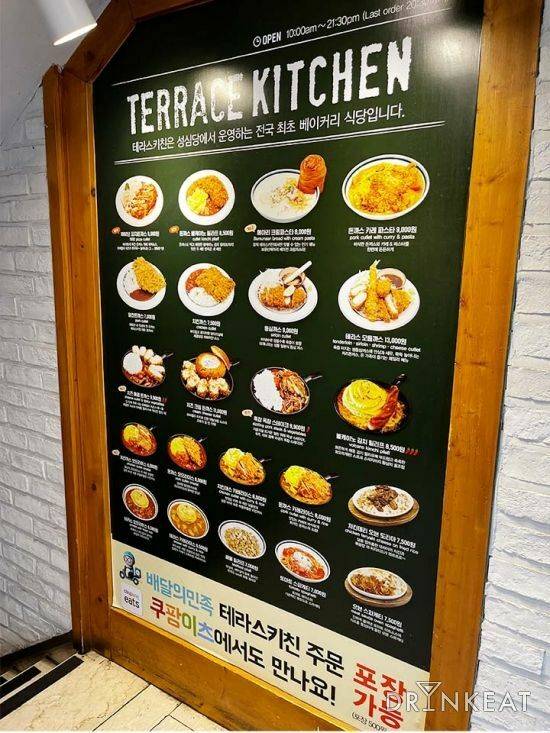 점심시간이 훌쩍 지났는데도, 식사를 해결하지 못해 테라스키친을 첫 번째 목적지로 선정했다. 테라스 키친은 성심당에서 운영하는 전국 최초의 베이커리 식당이다. 성심당은 테라스 키친 외에도 외식 사업으로 플라잉팬(스파게티 전문점), 삐아또(이탈리아 음식점), 우동야(우동 전문점)를 운영하고 있다. 모두 성심당 본점과 도보 1~2분 내외 거리에 있지만, 테라스 키친은 성심당 본점 건물과 이어져 있을 정도로 가깝기에 선택하게 됐다.