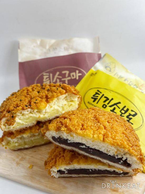 ① 성심당의 대표 메뉴인 튀김소보로. 튀기면 뭔들 맛이 없겠느냐지만, 소보로를 튀겼으면 두말할 필요가 있을까. 표면에 쿠키가 붙어있어 바삭함이 특징인 소보로를 기름에 튀겨 더욱 바삭바삭하게 즐길 수 있다. 단팥과 고구마 필링이 가득 들어있어 달콤한 맛이 처음부터 끝까지 느껴진다. 팥은 은은한 단맛을 자랑해서 팥을 싫어하는 이들도 거부감없이 도전 가능할 것으로 보인다. 에어프라이어에 약 5분간 데워 먹으면 맛을 배로 느낄 수 있다는 점을 기억하자. 초코 러버들을 위한 초코튀소도 있다.