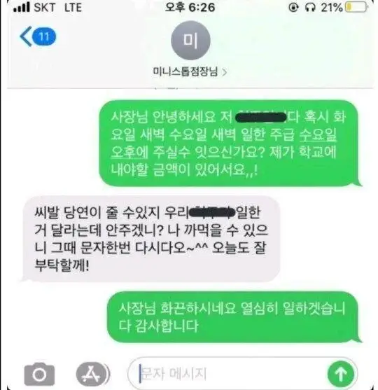 알바가 주급달라 하니 욕부터 박는 사장님.jpg