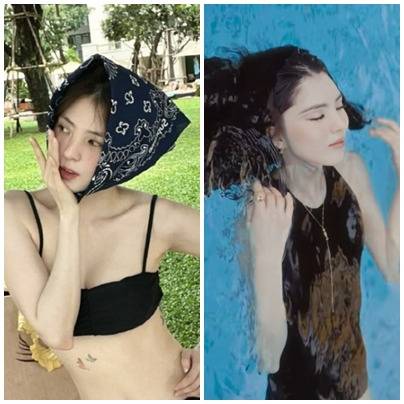 평소 물을 좋아하는 한소희는 수영장이 풍덩 빠져서 다채로운 모습을 보였는데요.