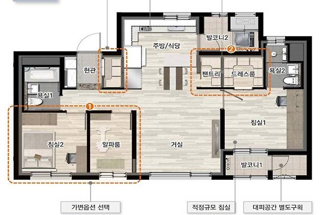 더불어 최근 신축 아파트는 소형 평수임에도 높은 공간 활용도를 자랑하며 인기를 견인하고 있다. 건설 업계에 따르면 과거에는 아파트 건설에서 4베이(거실 1·방 3) 판상형 구조가 전용 84㎡에만 적용됐다면, 최근에는 전용 59㎡ 가구에도 적용된다고 한다. 또한 소형 평수에도 다용도실, 드레스룸 등 다양한 수납공간을 제공하는 점도 인기몰이에 한몫하고 있다.