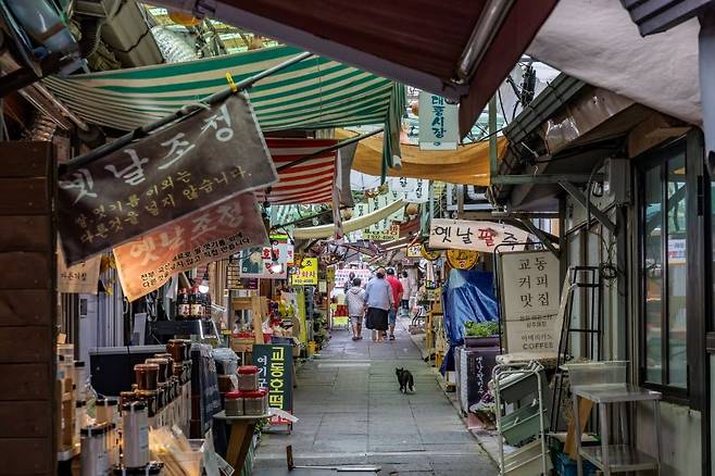 6·25전쟁 이후 황해도 실향민들이 만든 시장으로 1960~70년대 한국의 정취를 느낄 수 있는 시장입니다. 좁은 골목, 단층 건물, 감성을 자극하는 벽화와 옛 간판, 그리고 제비 조형물들이 어우러져 향수 한가득한 분위기가 일품이죠.