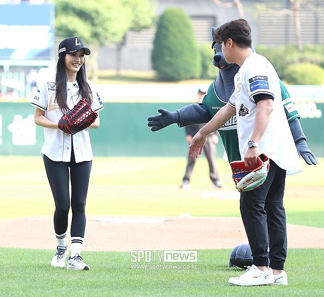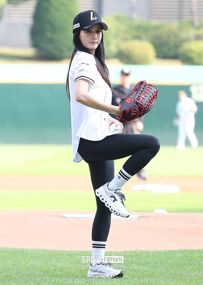 화이트 크롭티에 레깅스를 매치한 캐주얼한 시구 패션으로 마운드에 오른 하원미 씨는 연예인 못지않은 비주얼로 현장의 이목을 집중시켰다.