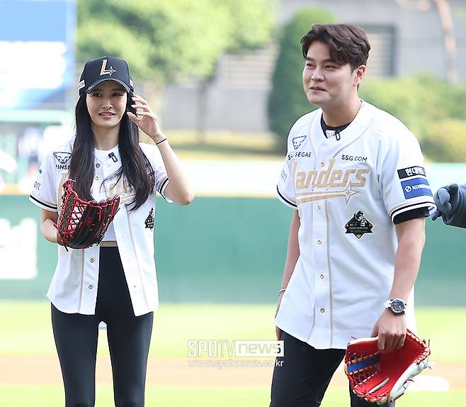 [스포티비뉴스=인천, 곽혜미 기자] 추신수의 아내 하원미 씨가 남다른 시구 패션을 선보였다.