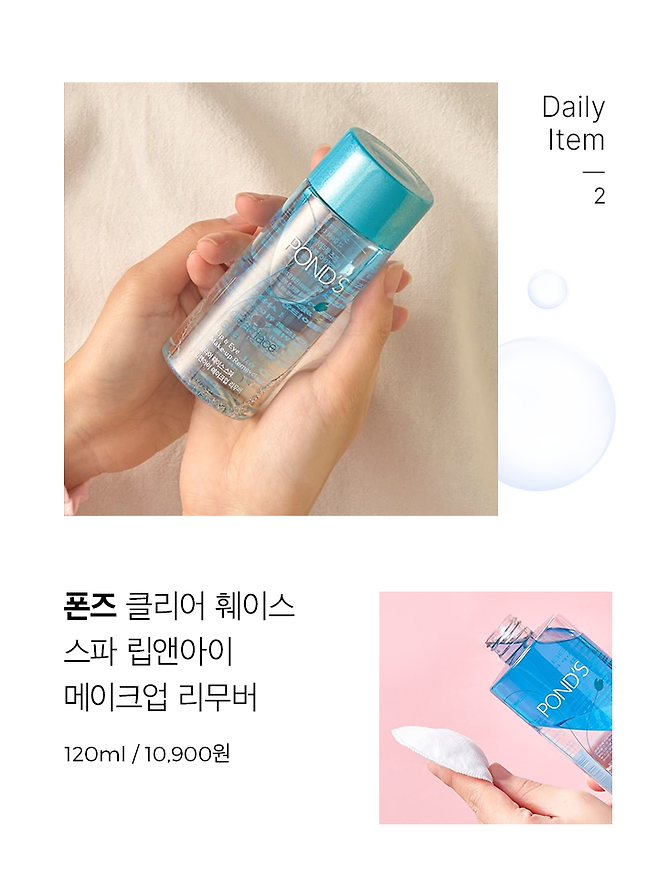 솔직하고 섬세한 리뷰를 위해 하루에도 몇 가지의 제품들을 사용해 보는데요. 여러 제품들을 테스트할 때 자극 없는 리무버는 필수! 폰즈의 립앤아이 리무버는 에디터들 모두 호불호 없이 가장 많이 사용하는 제품 중 하나에요. 세정력도 강력한데다, 눈 시림 같은 자극이 없어 자주 찾게 되죠. P인 에디터도 립앤아이 리무버가 떨어질 때 쯤이면 J 빙의한 듯 미리 쟁여두게 된답니다.