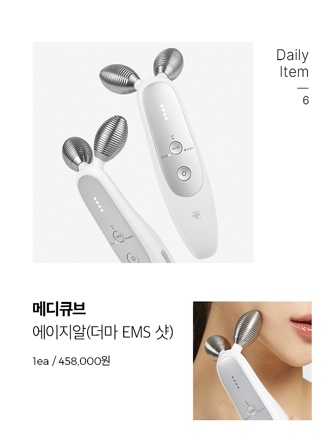 잠들기 전 10분 동안 침대에 앉아 메디큐브의 에이지알로 틈틈히 탄력 관리도 해주고 있어요. 중주파를 이용해 피부 속 근육을 움직여주어 근육이 쳐지지 않게 해주고, 전기 자극으로 콜라겐 생성을 도와주는 제품인데요. 처음 사용할 땐 찌릿하게 느껴지는 자극이 적응되지 않았는데, 꾸준히 사용하다 보니 자극도 익숙해지고 미세하게 윤곽라인이 정리되는 게 눈에 보이더라구요.