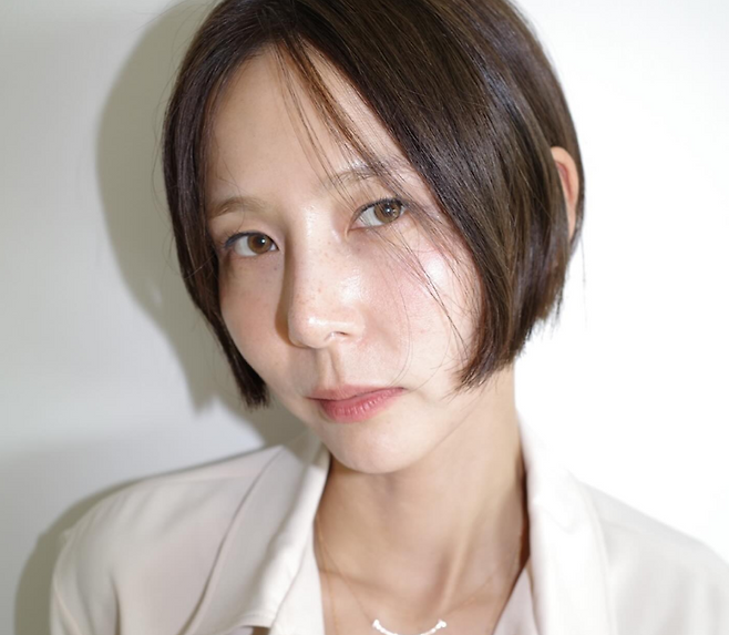 김나영은 두 개의 목걸이를 레이어드 스타일로 연출하여 눈길을 끌었습니다.