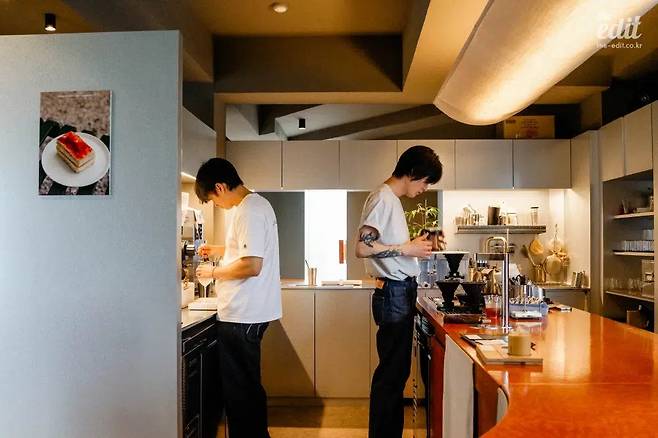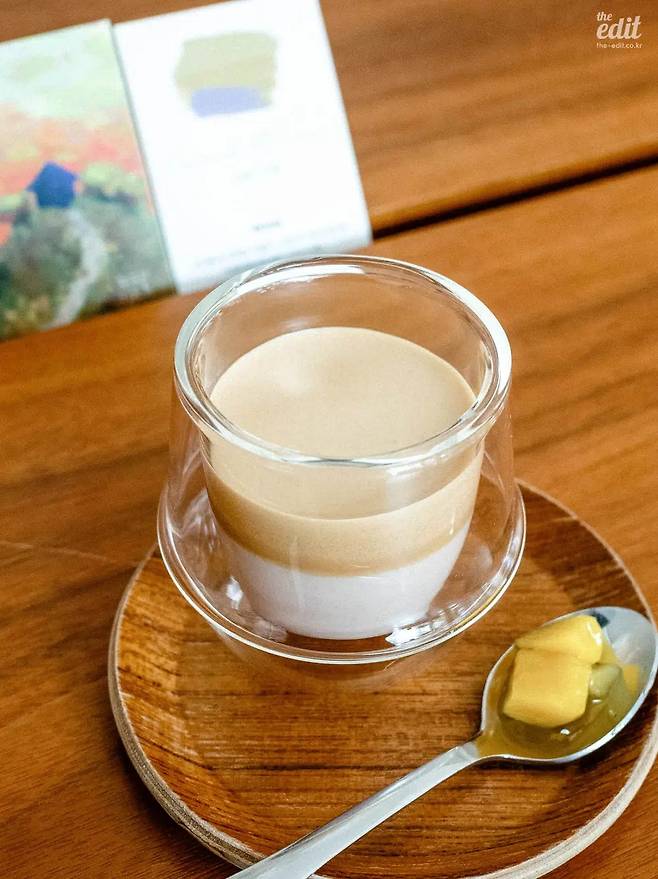 매장의 추천 커피는 브루잉 커피와 밀크브루커피. 이번에는 2022년 세계 로스팅 대회 챔피언 카펠릭스의 콜롬비아 게이샤 아이스 브루잉 커피를 마셨다. 마치 레몬그라스와 허브가 커피 안에서 폭죽처럼 터지는 느낌이었다. 이외에도 밀크티에서 영감을 받아 따듯한 우유에 브루잉한 밀크브루커피는 카페라테와 다른, 깔끔한 질감이 신선하다.