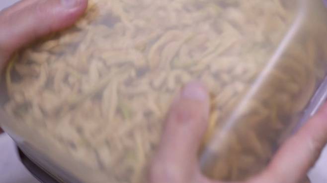 육수가 잘 섞이도록 뚜껑을 닫은 후 흔들어 주세요. 그리고 총 4시간 동안 불려 주세요. 중간에 골고루 불려지도록 한번 뒤집은 후 다시 뚜껑을 닫아 불려 주는 것이 좋아요.