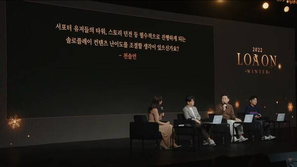 앞서 1부에서 수석팀장들은 2022년 동안 걸어온 로스트아크의 여정을 되돌아봤다. 지난해 로아온 윈터에서 약속했던 공약 이행도 점검했다.
