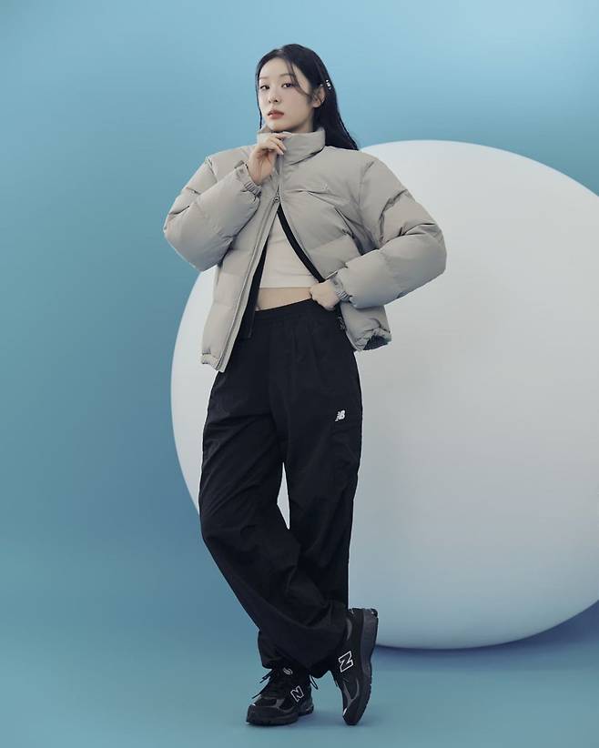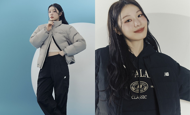 또 크롭티를 입고 베이지톤의 패딩과 블랙 트레이닝팬츠를,그레이 골지 팬츠와 연보라색의 경량패딩을 입어 다양한 겨울 패딩 코디를 선보였다.
