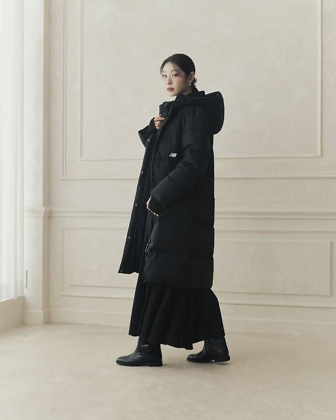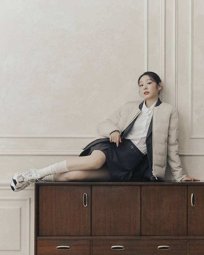 사진 속 김연아는 블랙 후드티와 경량패딩, 5부 레깅스를 입었고, 화이트셔츠와 그레이자켓,플리츠스커트를 입고 아이보리톤의 경량패딩을 입어 캐주얼한룩을 선보였다. 또 다른 사진에서는 롱스커트와 롱패딩을, 블랙 미니 원피스를 입고 화이트 경량패딩을 걸쳤다.