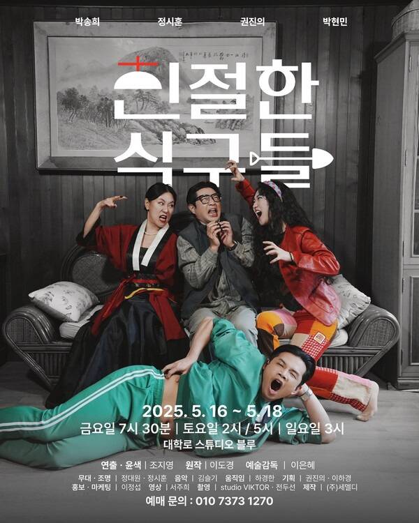 [사례뉴스=김호이 필진기자] 오는 2025년 5월 16일부터 18일까지, 대학로 스튜디오블루에서 연극 <친절한 식구들>이 관객들을 만난다. 이번 작품은 연출 조지영, 원작 이도경, 제작 주식회사 세멜디 엔터테인먼트 손에서 새롭게 태어난다.