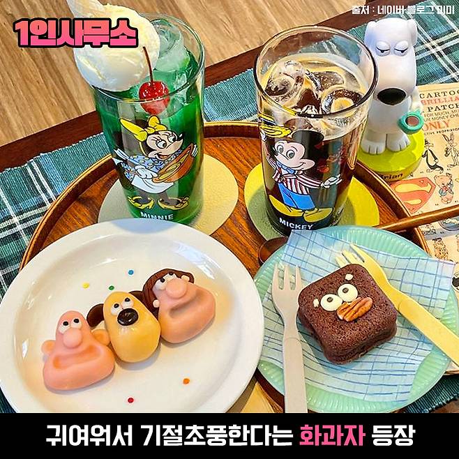 부산 광안리 카페 치면 빠지지 않는 1인사무소. 그만큼 입소문이 이미 나 있는 곳인데요~ 그이 유는 바로 화과자 때문입니다! 화과자 캐릭터는 매월 바뀐다고 하는데 귀여워서 기절초풍한다고 하네용ㅎㅁㅎ