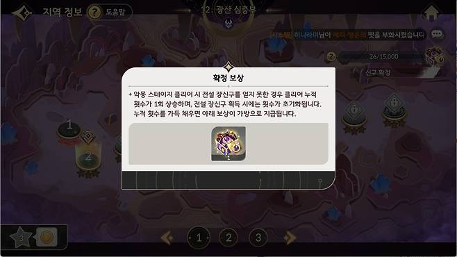 악몽 난이도부터 획득 가능한 전설 장신구의 확정 획득 시스템이 추가되었다. 악몽 난이도 스테이지를 1회 클리어할 때 전설 장신구를 획득하지 못했다면, '확정 보상' 게이지가 증가한다. 해당 게이지를 최대치(15,000)까지 채우면 4성 전설 등급 장신구 상자를 획득할 수 있다. 만약 4성 전설 장신구를 획득했다면, 게이지는 초기화된다.