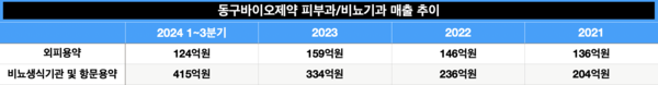 금융감독원 전자공시시스템에 따르면 동구바이오제약의 지난해 3분기 말 기준 장단기 차입금 규모는 739억원이다. 1년 전(355억원)과 비교하면 2배 이상 급증했다. 2년 전(230억원)에 비하면 3배 수준이다.