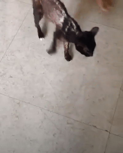 한 동물 구조 단체가 구조한 검은 고양이는 구조 당시 카론은 뼈가 앙상하게 드러날 정도로 심각한 영양실조 상태였습니다.