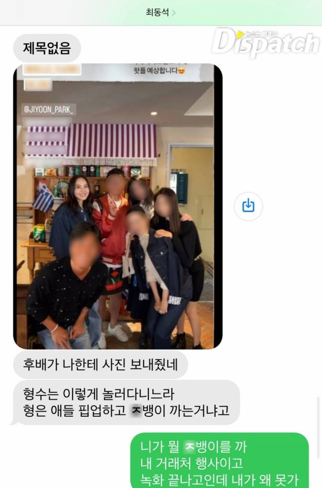 최동석 : 근데 걔가 캡처를 해서 이렇게 보낸 거야. "남자 만나고 있는데 괜찮아요? 형?" 하면서.
