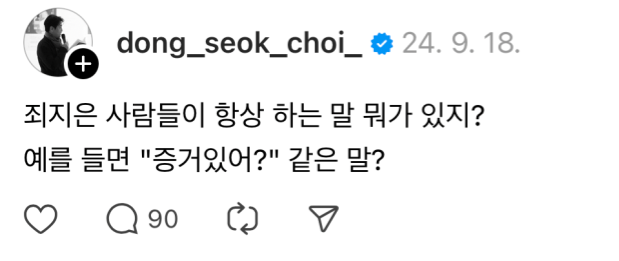 최동석은 그날 저녁, 쓰레드에 글을 올렸다.