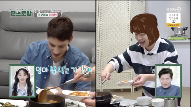 음식을 맛본 타쿠야와 파비앙은 "엄청 맛있다", "이거 배워야겠다"고 좋아했고, 파비앙은 "이렇게 제대로 된 밥 오랜만에 먹는다. 요즘 귀찮아서 군고구마만 먹는데. 엄마 밥 생각난다"고 말했다.