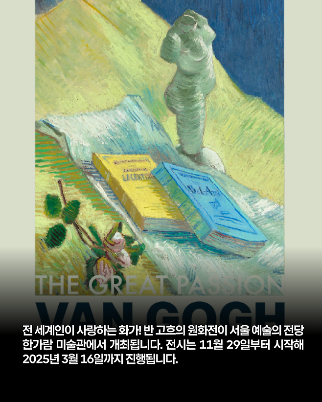 전 세계인이 사랑하는 화가! 모르는 사람이 없죠? 반 고흐의 원화전이 서울 예술의 전당 한가람 미술관에서 개최됩니다. 전시는 11월 29일부터 시작해 2025년 3월 16일까지 진행됩니다.