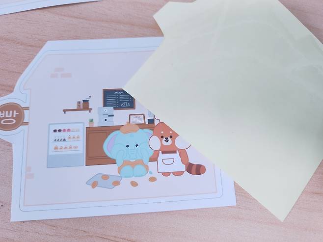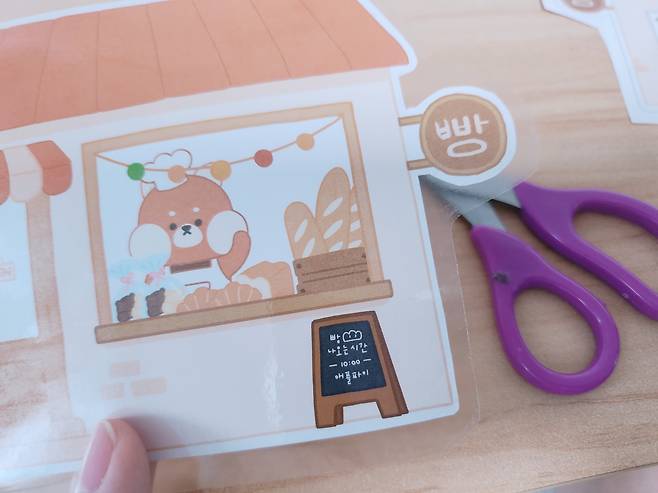결국 나머지는 저의 몫이 되었답니다. 이렇게 완성된 도안은 스티커처럼 떼어내 여기저기 붙이며 꾸밀 수 있어요!