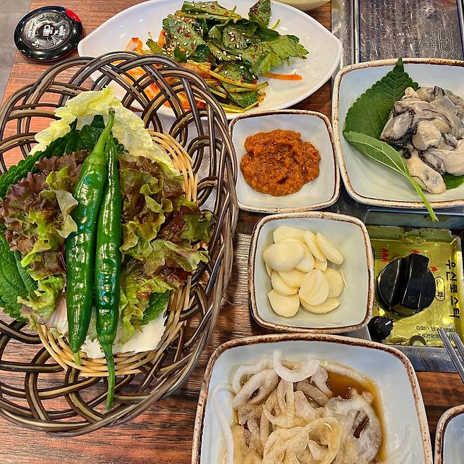 쌈 채소들이 제공되었습니다.