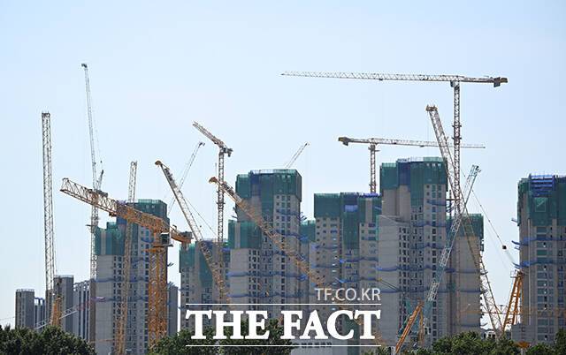 [더팩트ㅣ박헌우 기자] 한강변 대단지로 '단군이래 최대 재건축'으로 불리는 서울 서초구 반포주공아파트 1단지 일대가 12일 오후 수십 대의 크레인이 들어서는 등 분주한 모습을 보이고 있다.