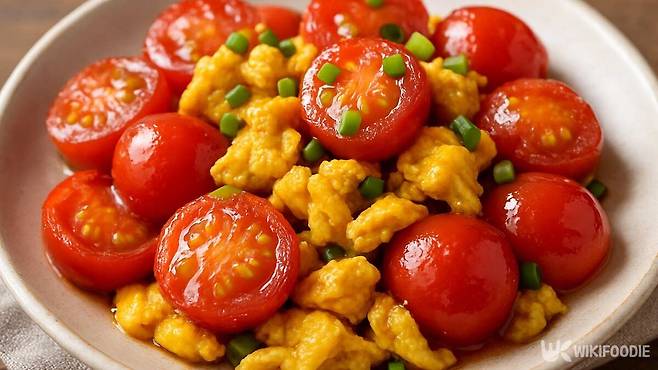 조리할 때는 팬에 올리브유를 두르고 잘 풀어둔 달걀을 먼저 넣어 부드럽게 익힌다. 달걀이 반쯤 익었을 때 껍질을 벗겨 깍둑썬 토마토를 넣고 약불에서 함께 볶는다. 이때 소금 대신 후추나 약간의 간장으로 간을 맞추면 깔끔한 맛을 살릴 수 있다.