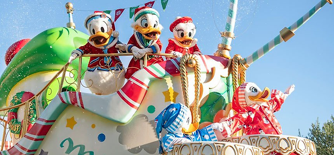 이번 크리스마스 축제에서 가장 주목받는 이벤트 중 하나는 바로 낮 퍼레이드, '디즈니 크리스마스 스토리'입니다. 아쉽게도 올해가 이 퍼레이드의 마지막 해라고 해요. 약 45분 동안 진행되는 이 퍼레이드는 '아쉬운 작별(Fond Farewell)'이라는 주제로, 다양한 디즈니 캐릭터들이 등장해 관람객들에게 감동과 즐거움을 선사할 예정입니다. 도쿄 디즈니랜드를 사랑하는 팬이라면 올해 이 마지막 퍼레이드를 놓치지 말아야 할 이유가 분명하겠죠?
