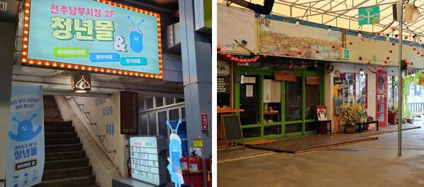 남부시장 안에는 남부시장청년몰이라는 곳이 있는데요. 청년몰은 남부시장의 2층에 자리하고 있습니다. 돌아다니면 보이는 독특한 생김새를 가진 총 4개의 계단들이 바로 청년몰로 들어가는 입구인데요.