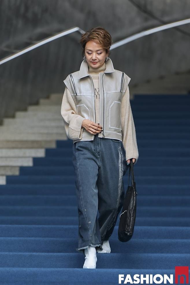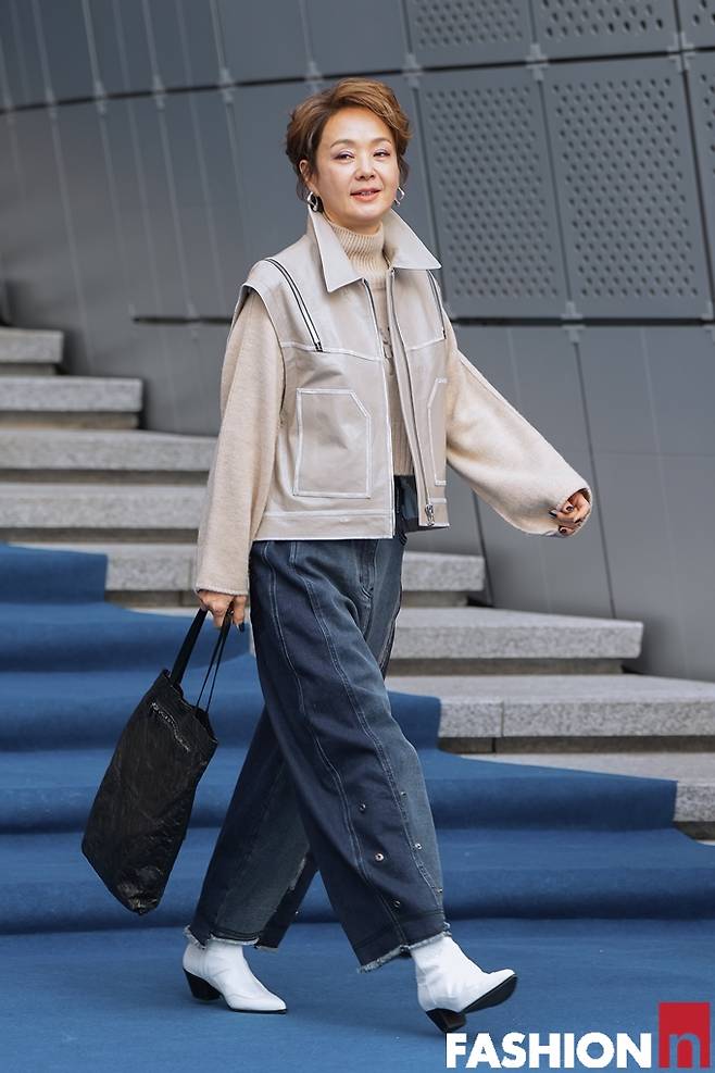 배우 배종옥이 가죽과 니트의 톤온톤 캐주얼 나들이룩으로 59세의 품격을 드러냈다.