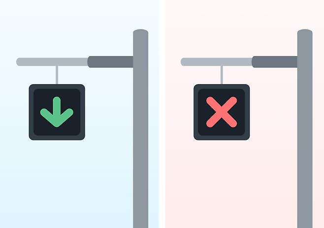 한편 빨간 엑스표 [X]는 전방 사고나 응급 차량 등으로 인한 가변차로의 운영 중단을 알려요. 앞선 신호에 맞게 갓길 주행 중이었더라도 빨간 엑스 표시를 있다면 바로 빠져나와 주시는 게 좋겠네요.