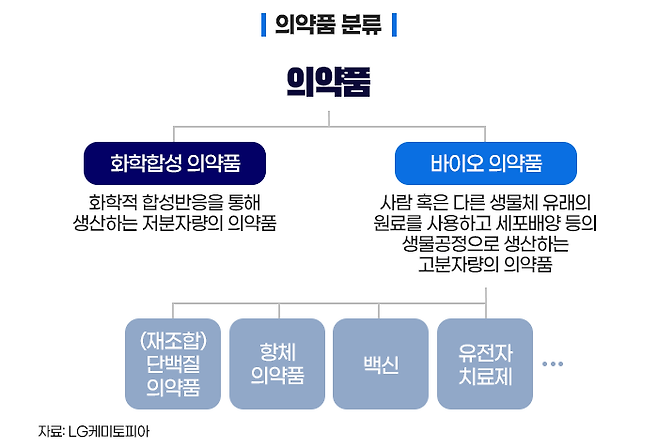 바이오 의약품이란 사람이나 다른 생물체에서 유래된 것을 원료로 삼아 제조한 의약품을 말하며, 독성이 낮고, 부작용이 적으며, 희귀성·난치성 질환 등 특정 질병을 표적 치료하는 데 효과적이라는 장점이 있습니다. 대표적인 바이오 의약품으로 당뇨병 치료제인 인슐린을 들 수 있습니다.