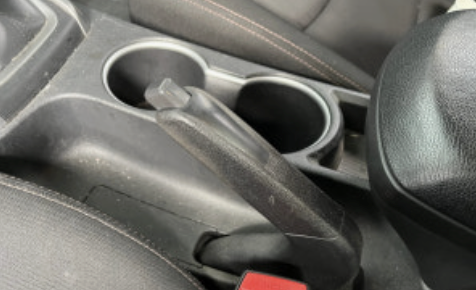 그 상태에서 '주차 브레이크'를 먼저 '확실하게' 채웁니다. (손으로 당기거나, 버튼을 누르거나, 발로 밟아서)