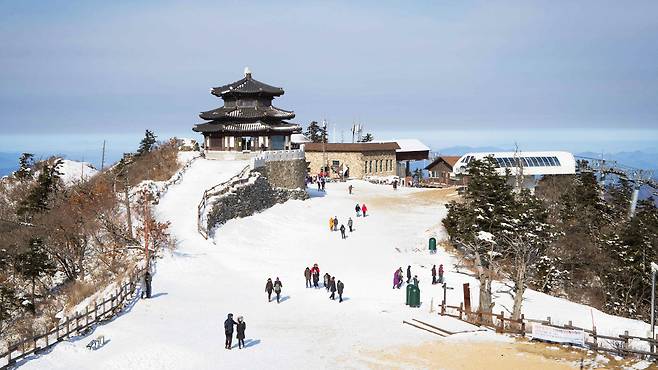 해발 1,614m 향적봉을 중심으로 펼쳐지는 능선과 계곡은 눈이 내리는 순간 환상적인 설국으로 변모하며, 곤도라를 이용하면 누구나 쉽게 그 비경에 다가설 수 있습니다.