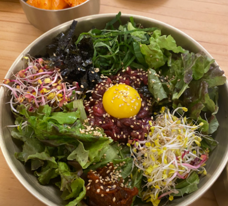 한우육회비빔밥: 신선한 한우 육회에 직접 만든 약고추장을 더해 비벼 먹는 별미