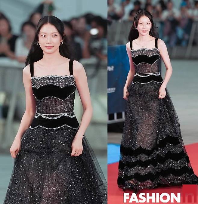 배우 공승연이 물결 프린트의 시스루 레드카펫 드레스룩으로 치명적인 매력을 발산했다.