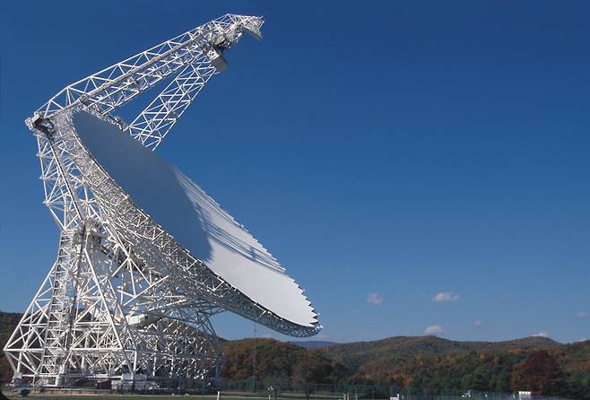 그린뱅크 마을이 특별한 이유는 1958년 미국 정부에 의해 ‘국가 전파 제한 구역(National Radio Quiet Zone, NRQZ)’으로 지정되었기 때문이에요. 전파 신호의 간섭을 최소화하기 위해 설정된 특별 보호 구역으로, 이곳에서는 전파를 방출하는 대부분의 전자기기 사용이 엄격히 제한됩니다. 그 이유는 바로 이곳에 세계에서 가장 큰 움직이는 전파 망원경이 있기 때문이에요. ‘로버트 C. 버드 그린뱅크 전파망원경(Robert C. Byrd Green Bank Telescope, GBT)’으로 불리는 이 망원경은 구경이 100미터에 이르는 거대한 크기를 자랑합니다.