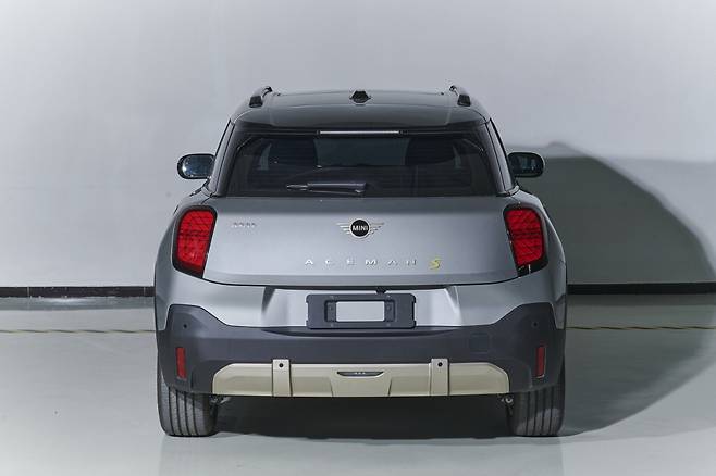 측면부는 전면 및 후면 펜더 볼륨감이 강조됐으며, 검정색 플라스틱 휠 아치 클래딩으로 SUV 특유의 투박한 디자인을 구현했다. 후면부에는 미니 시그니처 유니온 잭(Union Jack) 그래픽이 반영된 테일램프, 루프 스포일러 등이 배치됐다. 에이스맨 실내는 공개되지 않았다.