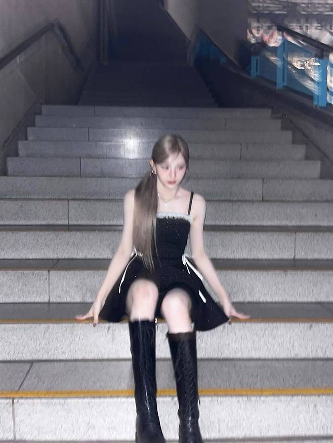 이번 연지의 스타일은 미니드레스 특유의 발랄함과 블랙 컬러의 시크함을 절묘하게 조화시킨 예다. 드레스에 레이스나 리본 디테일이 가미된 아이템을 고르고, 묵직한 부츠나 미니백으로 마무리하면 데일리룩에서도 쉽게 응용 가능하다.