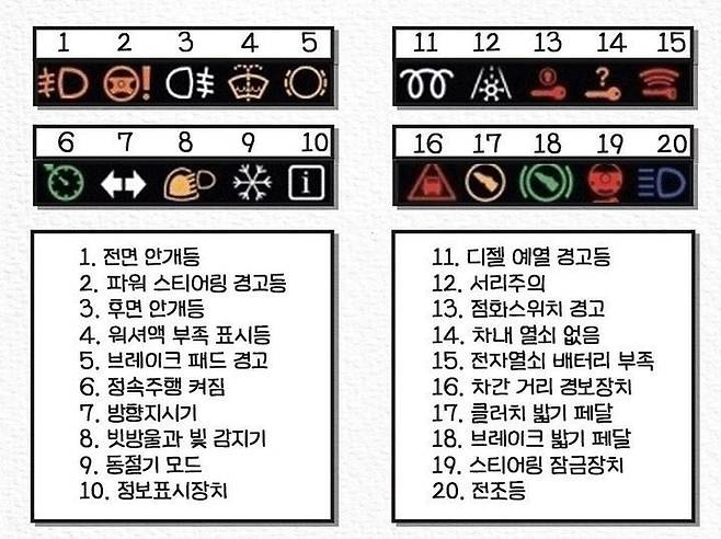 안개등(Fog Light): 안개 낀 날씨에 가시성 향상