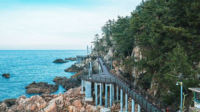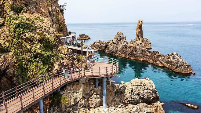 곳곳에 전망대가 마련되어 다양한 각도에서 풍경을 즐길 수 있으며, 특히 출렁다리는 파도 위를 걷는 듯한 짜릿한 경험을 선사한다. 데크가 해안선 가까이 놓여 있어 마치 바다 속으로 빨려 들어가는 듯한 착각마저 준다.