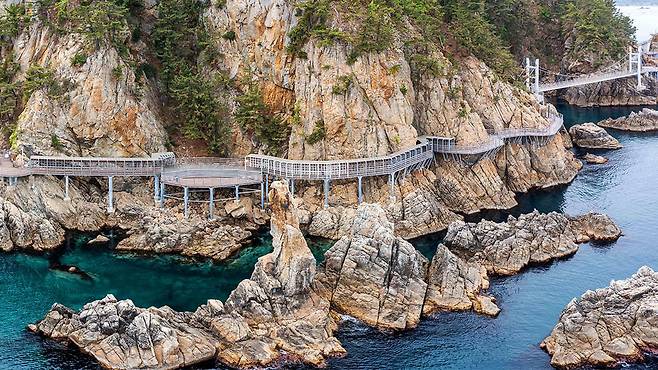 바로 초곡 용굴촛대바위길. 삼척의 해금강이라 불리는 이 길은 걸을 때마다 감탄이 터져 나오는 해안 절경을 선사한다.