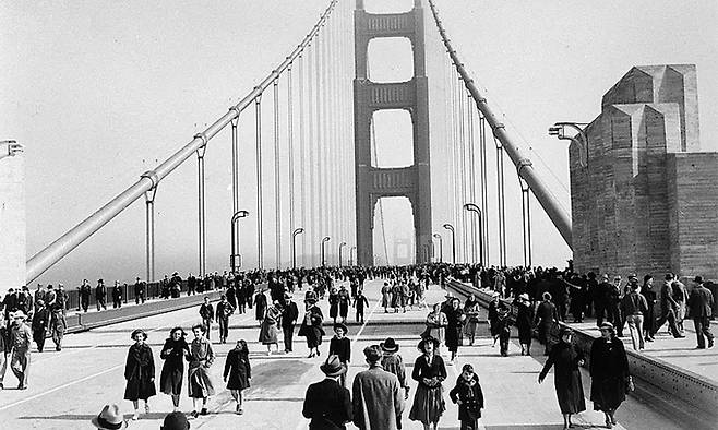 87년 전 오늘 미국 샌프란시스코의 명물 금문교(Golden Gate Bridge·사진)가 '보행자의 날'을 맞아 완공 후 처음으로 대중에 개방됐다.