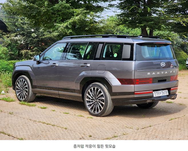 승차감에 대한 건 장단점이 공존합니다. 이전 세대의 싼타페는 유난히 2열이 장애물을 넘어갈 때 불편했습니다. 앞 서스펜션은 부드럽고 많이 움직이지만 리어 서스펜션은 아주 짧고 단단하게 움직이면서 충격을 고스란히 전해주는 느낌이었는데 5세대로 오면서 앞뒤 모두 상당히 부드럽게 움직이게 되었습니다. 특히 뒤쪽의 느낌이 많이 변했죠.