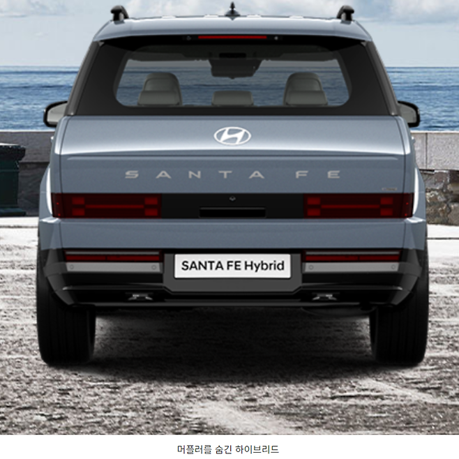 아래와 같이 하이브리드 모델은 히든 타입으로 만들어져 있어 오히려 말끔한 모습인데 2.5 가솔린 터보 모델은 우측에 머플러 팁을 하나 내놨습니다. 가뜩이나 적응이 필요한 후면 디자인인데 여기에 정점이라도 찍듯 머플러 팁을 만들어놨고 실제로 배기음이 다소 강조되어 있는데 출력이 좋은 차량은 맞지만 굳이 이렇게 디자인을 망치면서까지 강조할 필요가 있었나 싶더군요.