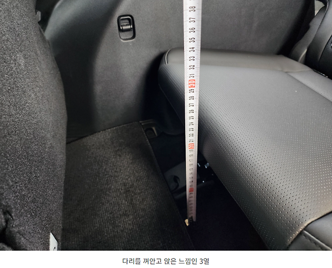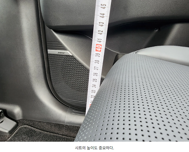 비교를 위해 2열 시트도 측정을 해보니 거의 39cm 정도가 나오던데 결국 3열 시트가 제대로 된 시트의 역할을 하려면 어쩔 수 없이 차량 내부 공간의 높낮이 차이가 거의 없는 mpv가 여전히 정답이라고 하겠습니다.
