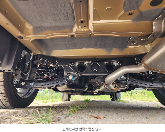 하지만 세련미라는 개념을 접목시켜 보면 아쉽다는 의견입니다. 글로 표현하기가 참 애매한데 출렁거릴 정도는 아니지만 차량이 다시 자세를 잡아내는 그 마무리가 영 개운치 못하다고 느껴집니다. 노면의 충격과 만날 때는 꽤나 잘 걸러주는가 싶다가도 그 충격의 여파를 해결할 때의 움직임이 기대를 벗어날 때가 많았습니다.