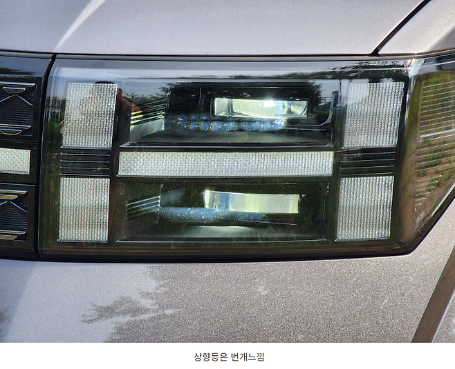 대문자 H 형상의 빈 공간에 아래와 같이 옆으로 긴 직사각 형태의 프로젝션 타입 LED 헤드램프가 들어갑니다. 야간 시인성도 상당히 좋았는데 상향등을 사용해보니 무슨 플래시 터뜨리는 느낌이더군요. 위치도 상당히 높고 고속도로 안내판이 반사판이 된 것마냥 엄청나게 번쩍이더군요. 주변 차량들에게 주의를 줄 때 상당히 효과적일 것 같습니다.